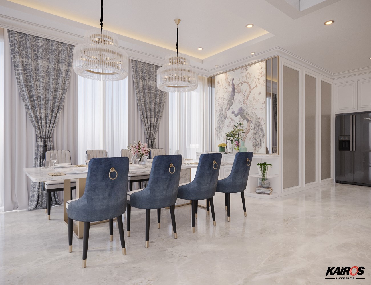 Penggunaan Chandelier memberikan kesan mewah dan elegan sehingga memberikan tampilan interior classic modern berkelas.