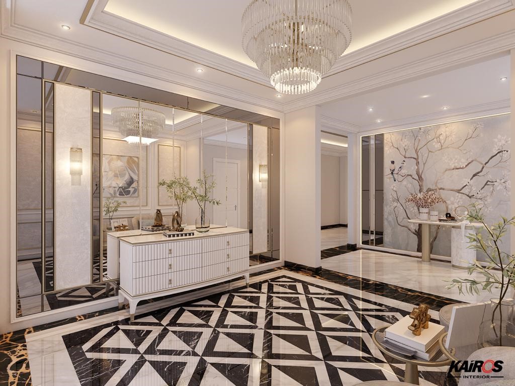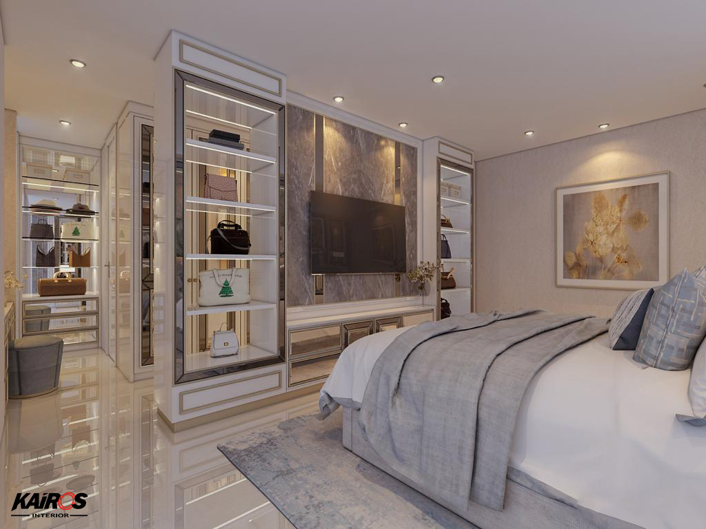 Hunian dengan gaya desain klasik modern biasanya menggunakan warna netral seperti putih dipadukan dengan warna emas yang akan membuat nuansa megah dan mewah pada hunian.