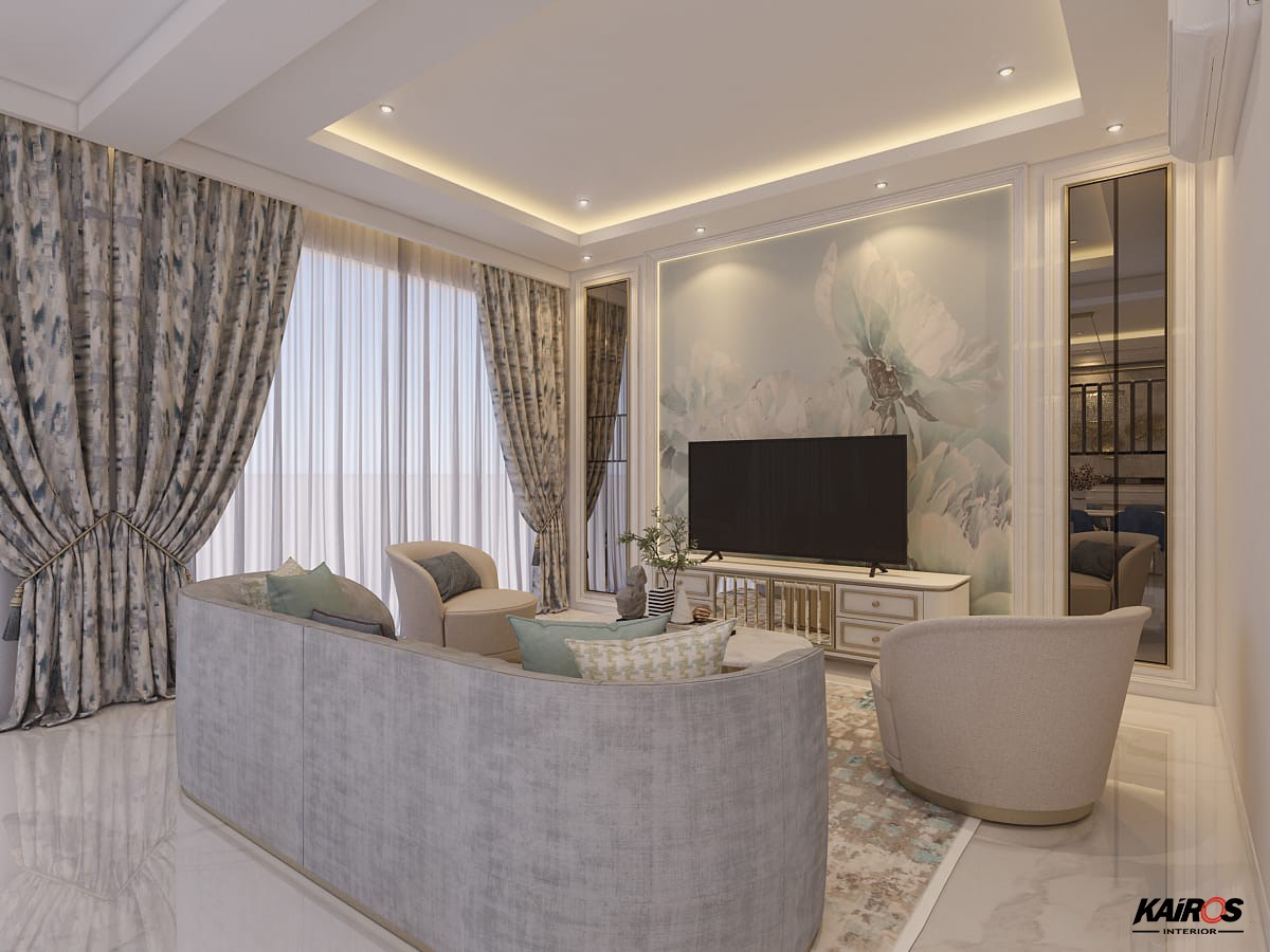 Atur posisi furniture mengeliling pada ruang keluarga untuk memberikan kenyamanan dan kesenangan saat menghabiskan waktu bersama anggota keluarga.